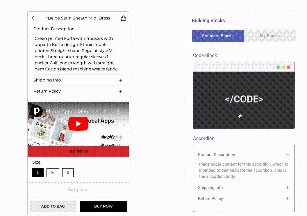 Code Blocks is a tool that gives brands the power to design distinct shopping experiences using a user-friendly text editor. With Code Blocks, brands can easily design unique features and functionalities for their Shopify stores. Developers can effortlessly build customized experiences using HTML, CSS, and JavaScript.
